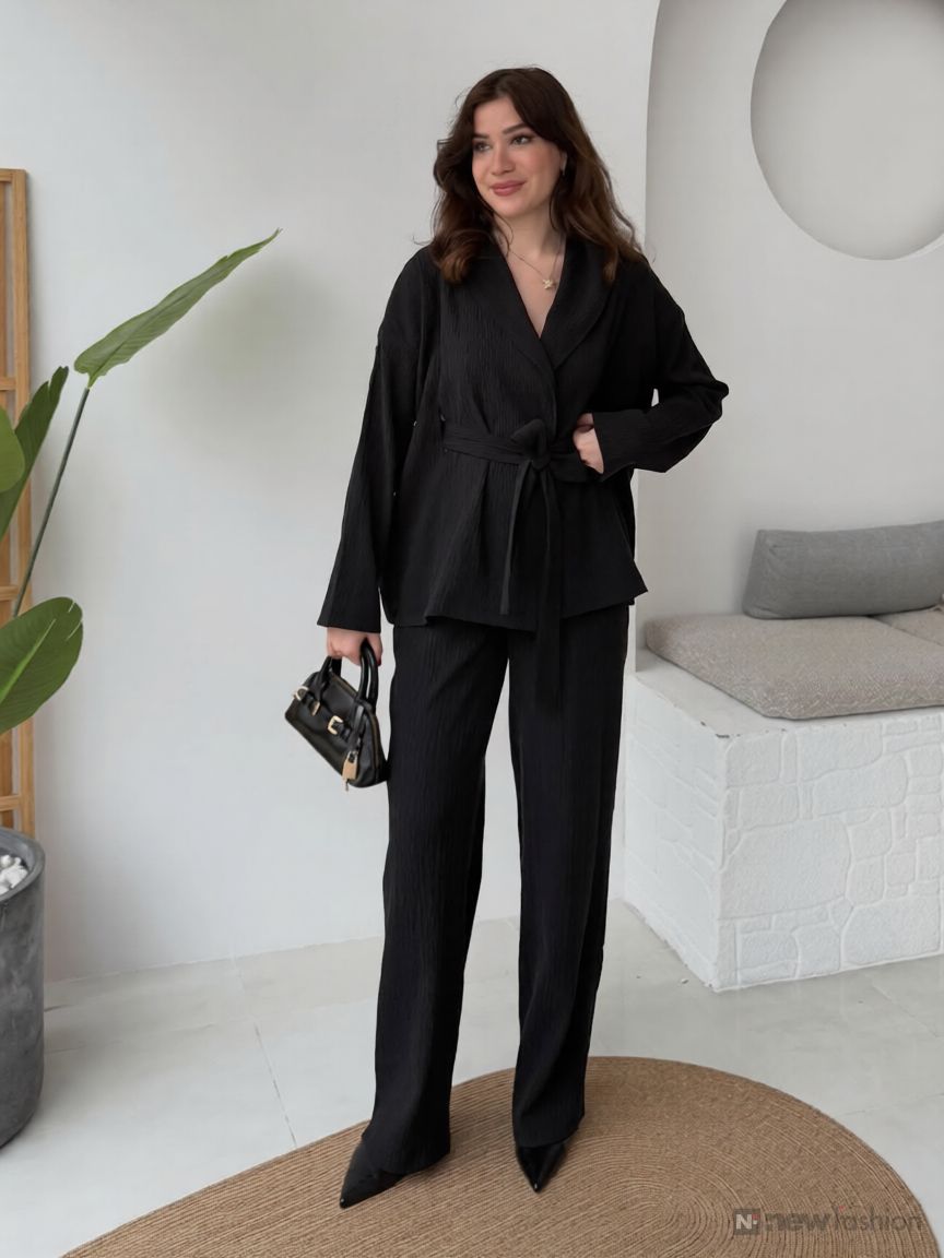 ✨ تألقي بإطلالة عصرية ومريحة مع هذا الأنسومبل (Ensemble) النسائي الفاخر! يتميز بتصميم أكمام الخف...